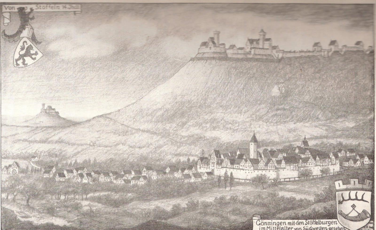 Es ist geschichtlich erwiesen, daß Gönningen einstmals eine Stadt war. Im Jahr 1300 verkaufen die angestammten Herren von Stöffeln ihre Burg Stöffeln und dazu ihre Stadt Ginningen an Wirtenberg. Beide sind später noch wiederholt genannt. Über die Stadtgründung selbst ist wie bei den meisten alten Städten, keine Urkunde mehr vorhanden. Doch wenn man auch garnichts Geschriebenes über die Stadt überliefert hätte, so genügte für den Kundigen doch ein einziger Blick auf die Ortskarte, um festzustellen, daß unser „Oberdorf“ nach einem geradezu beispielhaften und klaren Stadtplan systematisch angelegt worden ist. Statt „im Oberdorf“ dürften wir ruhig mit Fug und Recht und besser „im Städtle“ sagen.